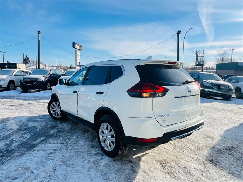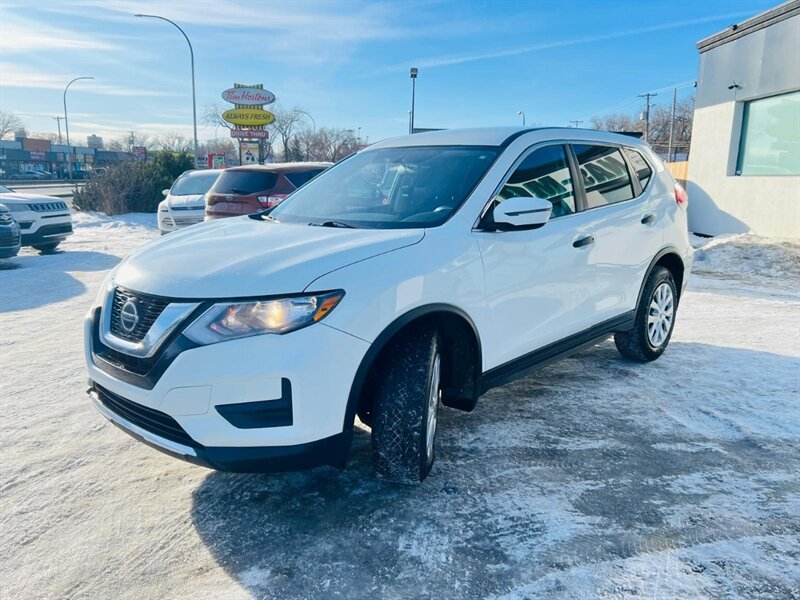 2018 Nissan Rogue S — White exterior, Black interior. Powered by a 2.5L four-cylinder engine paired with Nissan’s Xtronic continuously variable transmission (CVT). This Rogue delivers fuel economy of approximately 9.4 L/100 km in the city and 7.4 L/100 km on the highway. The vehicle is in excellent overall condition.