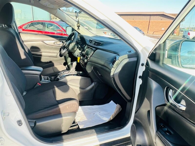 - Exterior features: clean white finish with functional exterior mirrors and standard lighting package. The Rogue’s compact crossover proportions provide an elevated driving position with good outward visibility.